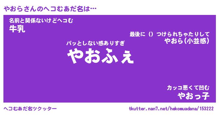 | ファンタジー風あだ名 | 『ヤオフェル』『エターナルヤオラー』 |