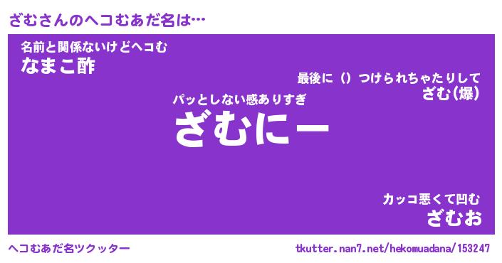 | ポケモン風あだ名 | 『ザムチュウ』『ザムダネ』『ヒザム』 |