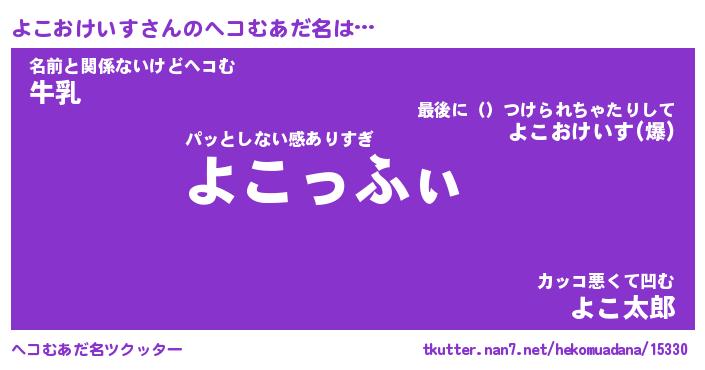 | 男性向けラノベタイトル風あだ名 | 『ヨコオケイスアートオンライン』 |