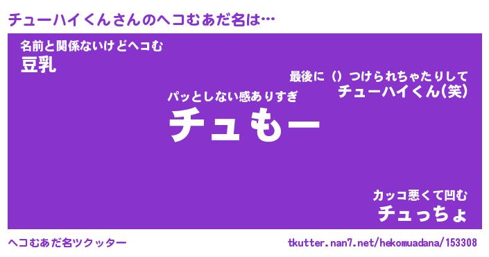 | 恥ずかしいあだ名 | 『プリティーチューハイくん』『チュちん』 |