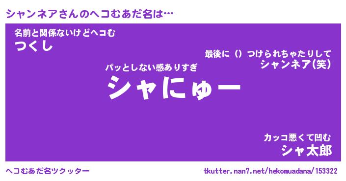 | 恥ずかしいあだ名 | 『プリティーシャンネア』『シャっちょ』 |