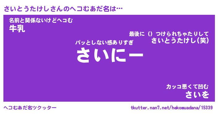 | ヒーロー風カッコイイあだ名 | 『スーパーサイトウタケシ』 |
