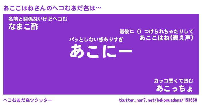 | ヒーロー風カッコイイあだ名 | 『スーパーアココハネ』『銀牙騎士アコ』 |
