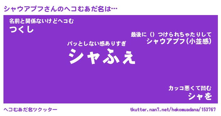 | 2回繰り返すあだ名 | 『シャシャ』『シシャャ』『うろうろ』 |