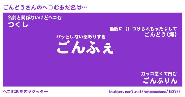 | ポケモン風あだ名 | 『ゴンチュウ』『ゴンドダネ』 |