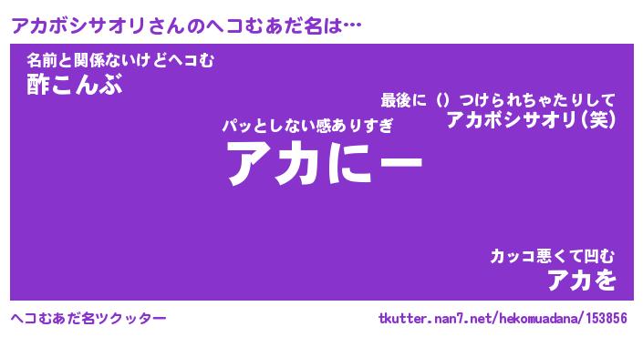 | 欧米人風あだ名 | 『マイケルアカボシサオリ』 |