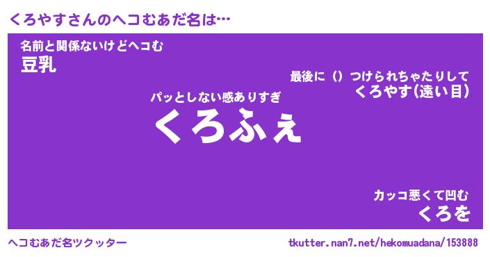 | ファンタジー風あだ名 | 『クロフェル』『エターナルクロヤスー』 |