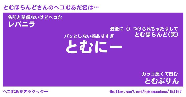 | 胡散臭い通販商品みたいなあだ名 | 『億万長者になれるブレスレット…その名も「とむほらんど」』 |
