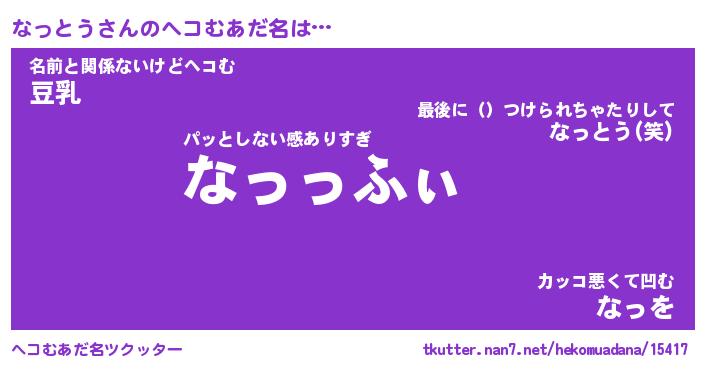 | ファンタジー風あだ名 | 『ナッフェル』『エターナルナットウー』 |