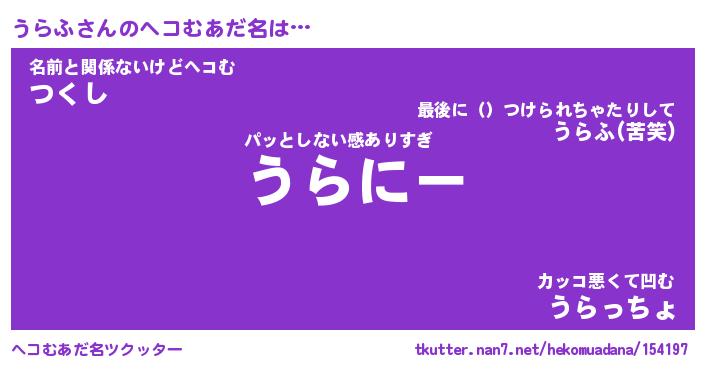 | 恥ずかしいあだ名 | 『プリティーうらふ』『うらっちょ』 |