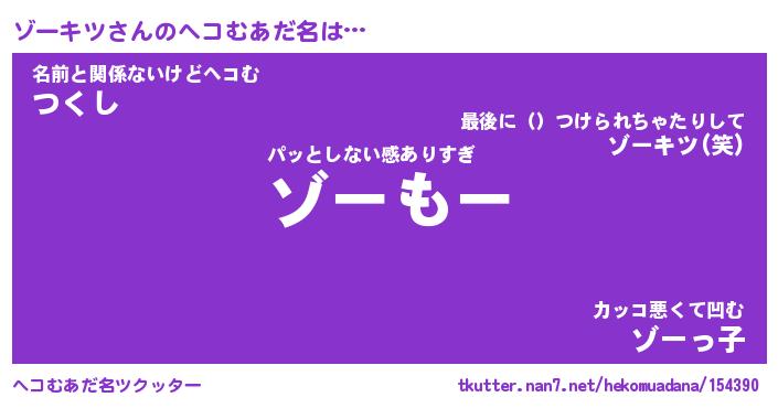 | 意味不明あだ名 | 『ペロリンゾーキツ』『永久保存ゾーキツ』 |
