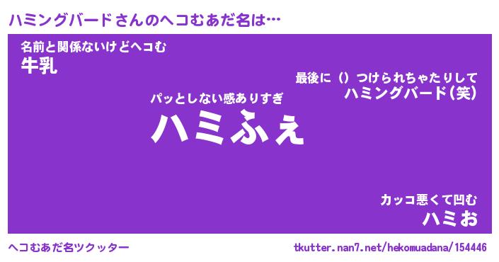| 男性向けラノベタイトル風あだ名 | 『ハミングバードの憂鬱』 |