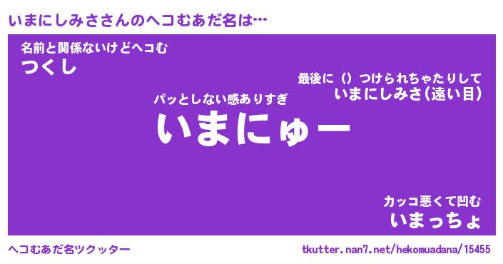 | 意味不明あだ名 | 『ペロリンいまにしみさ』 |