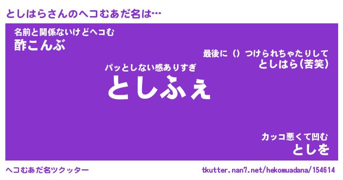 | ファンタジー風あだ名 | 『トシフェル』『エターナルトシハラー』 |