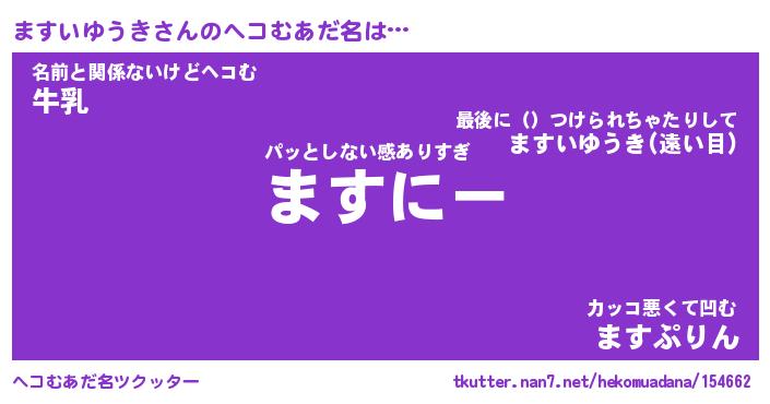 | 恥ずかしいあだ名 | 『プリティーますいゆうき』『ますっちょ』 |
