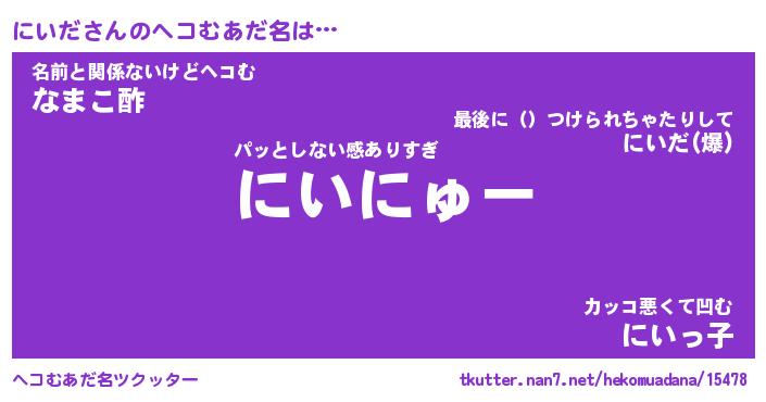 | 2回繰り返すあだ名 | 『にいにい』『ににいい』『にたにた』 |