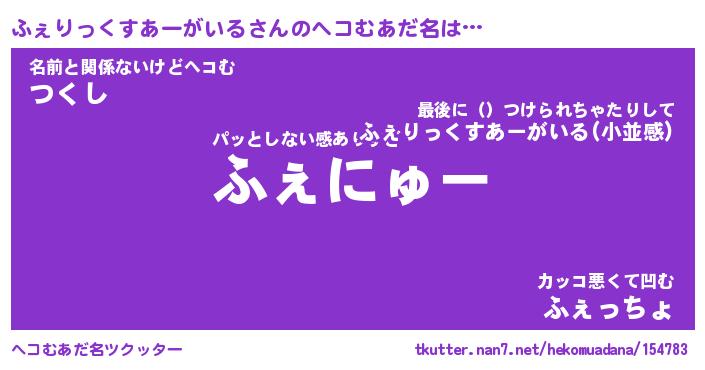 | ファンタジー風あだ名 | 『フェフェル』『ファントムフェス』 |