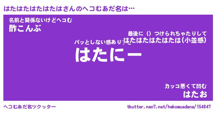 | 男性向けラノベタイトル風あだ名 | 『はたはたはたはたはの憂鬱』 |