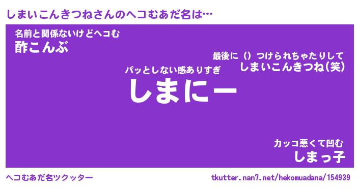 | 男性向けラノベタイトル風あだ名 | 『シマイコンキツネアートオンライン』 |