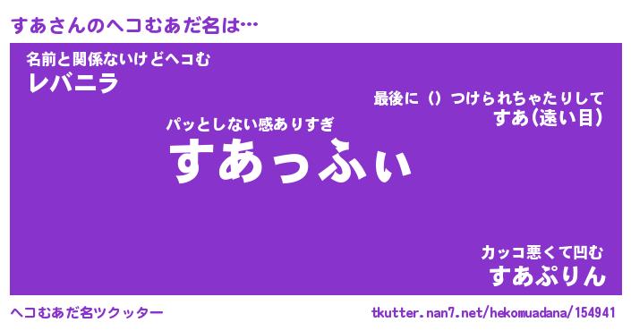 | ファンタジー風あだ名 | 『スアフェル』『エターナルスアー』 |