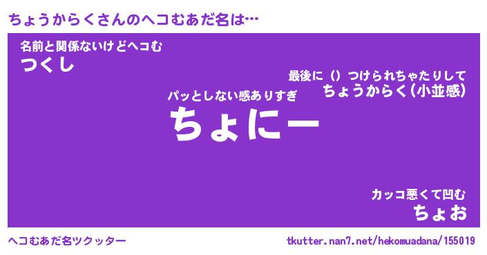 | 意味不明あだ名 | 『ペロリンちょうからく』 |
