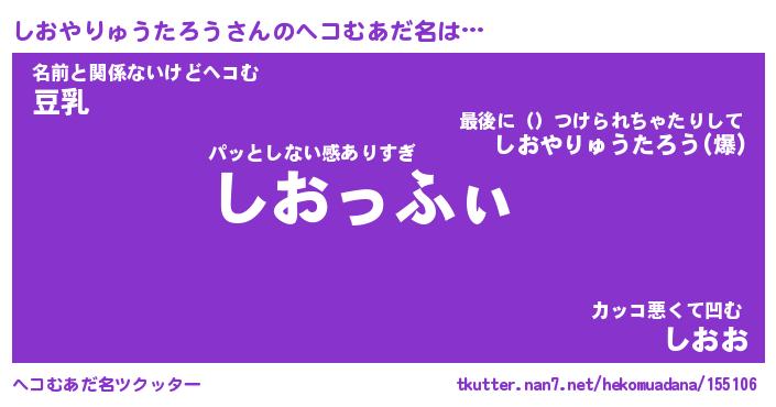 | ヒーロー風カッコイイあだ名 | 『スーパーシオヤリュウタロウ』 |