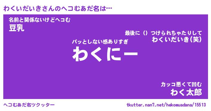 | 欧米人風あだ名 | 『マイケルわくいだいき』 |
