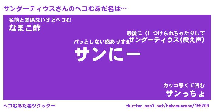 | 女子向けラノベタイトル風あだ名 | 『(仮)サンダーティウスのやんごとなき事情』 |