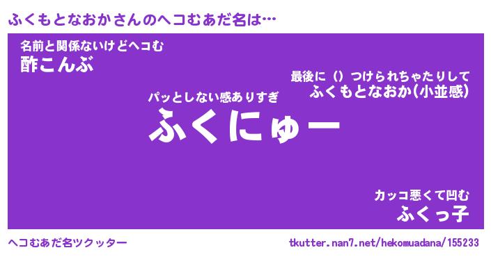 | 2回繰り返すあだ名 | 『ふくふく』『ふふくく』『ぬらぬら』 |