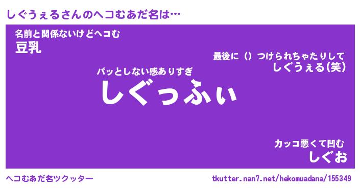 | 2回繰り返すあだ名 | 『しぐしぐ』『ししぐぐ』『あんあん』 |