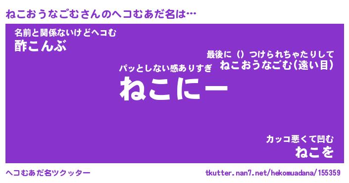 | 2回繰り返すあだ名 | 『ねこねこ』『ねねここ』『くにくに』 |