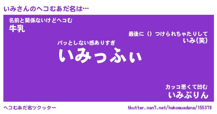 | ポケモン風あだ名 | 『イミチュウ』『イミダネ』『ヒイミ』 |