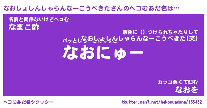 | 肩書あだ名 | 『なおしょしんしゃらんなーこうべきた店長』 |