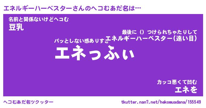 | ヒーロー風カッコイイあだ名 | 『スーパーエネルギーハーベスター』 |