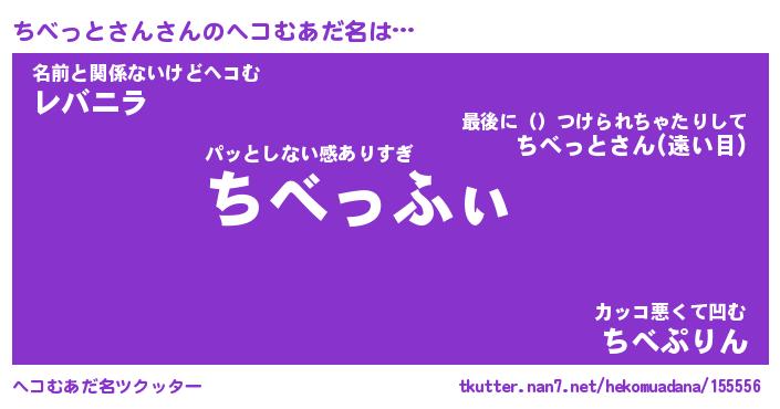 | 可愛いあだ名 | 『ちんちん』『ちべちー』 |