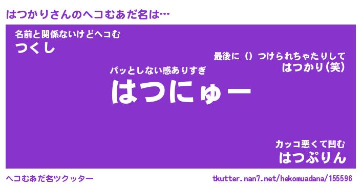 | ファンタジー風あだ名 | 『ハツフェル』『エターナルハツカリー』 |