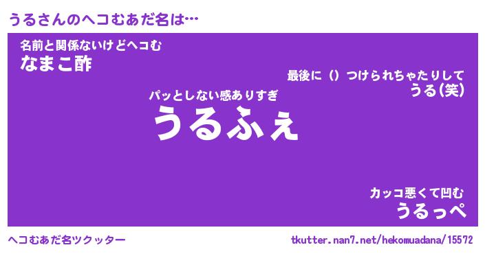 | ポケモン風あだ名 | 『ウルチュウ』『ウルダネ』『ヒウル』 |