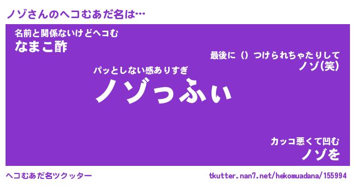 | 胡散臭い通販商品みたいなあだ名 | 『必ず成功する霊験あらたかなお札…その名も「ノゾ」』 |