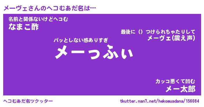 | ファンタジー風あだ名 | 『メーフェル』『エターナルメーヴェー』 |