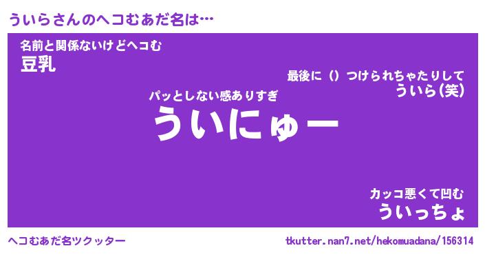 | 意味不明あだ名 | 『ペロリンういら』『ういらフォーエバー』 |