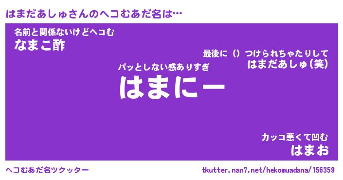 | 自動車の名前っぽいあだ名 | 『ハマティマ』『ハクア』『ハント』 |