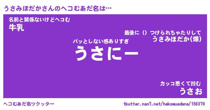 | 胡散臭い通販商品みたいなあだ名 | 『億万長者になれるブレスレット…その名も「うさみほだか」』 |