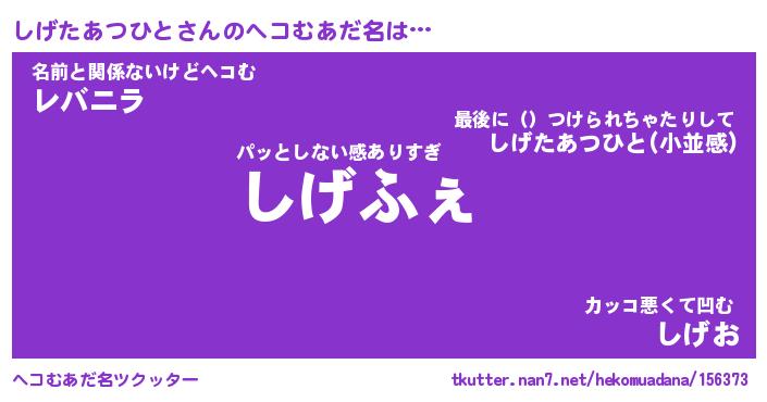 | 意味不明あだ名 | 『ペロリンしげたあつひと』 |
