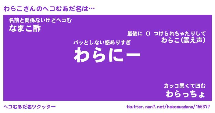 | 意味不明あだ名 | 『ペロリンわらこ』『わらこフォーエバー』 |