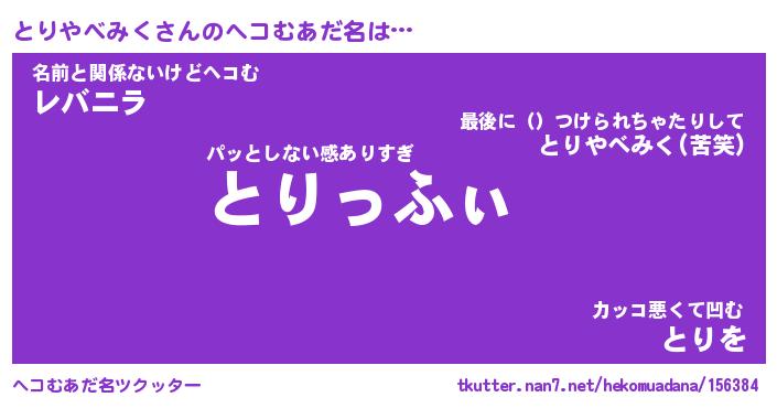 | 伝説のあだ名 | 『封印されしスナイパーとりやべみく』 |
