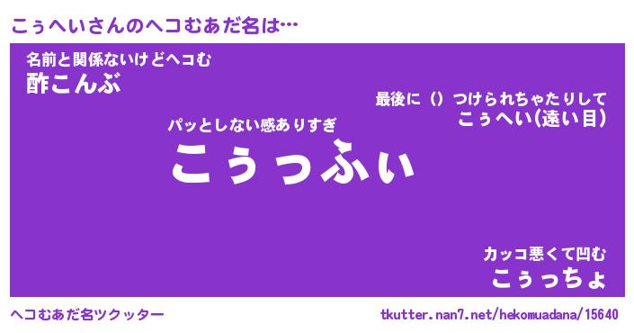 | 意味不明あだ名 | 『ペロリンこぅへい』『永久保存こぅへい』 |