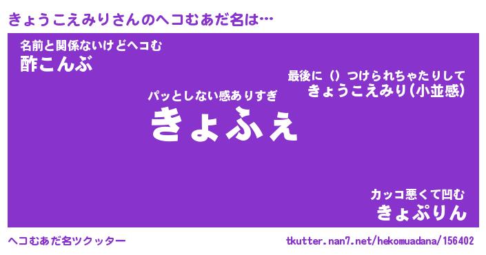 | 胡散臭い通販商品みたいなあだ名 | 『億万長者になれる水晶球…その名も「きょうこえみり」』 |