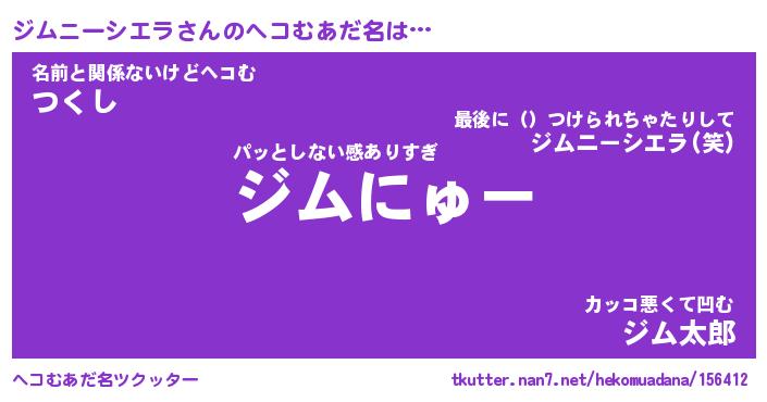 | 2回繰り返すあだ名 | 『ジムジム』『ジジムム』『がみがみ』 |