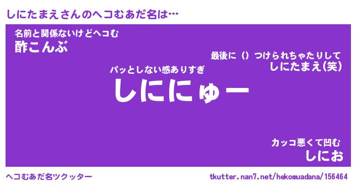 | ヒーロー風カッコイイあだ名 | 『スーパーシニタマエ』『天弓騎士シニ』 |