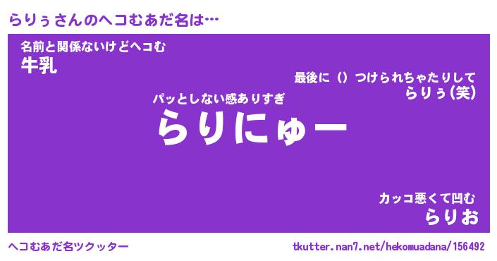 | 意味不明あだ名 | 『ペロリンらりぅ』『らりぅフォーエバー』 |